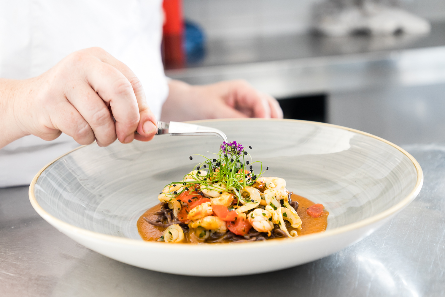 La cucina è il tempio di Giovanna, i piatti però non nascono lì dentro ma sono il frutto di fatti accaduti, emozioni, intuizioni che poi si trasformano in sapori, colori, consistenze. Ne è un esempio particolarmente significativo il piatto “ il grande viaggio” nato nel 2011 per ricordare la “Primavera Araba”, qui si racconta il sogno dell’emigrato Africano che lo spinge verso il miraggio Francese, passando per la Liguria e il Piemonte. Ogni elemento ha il suo riferimento : il dattero rappresenta la Tunisia, il dentice Lampedusa, il crostino di tumminia la Sicilia, il basilico la Liguria, il tartufo il Piemonte ed infine il brie la Francia. Non sveliamo altri particolari di queste creazioni, lasciamo a Voi il piacere di scoprirli e di farveli raccontare.