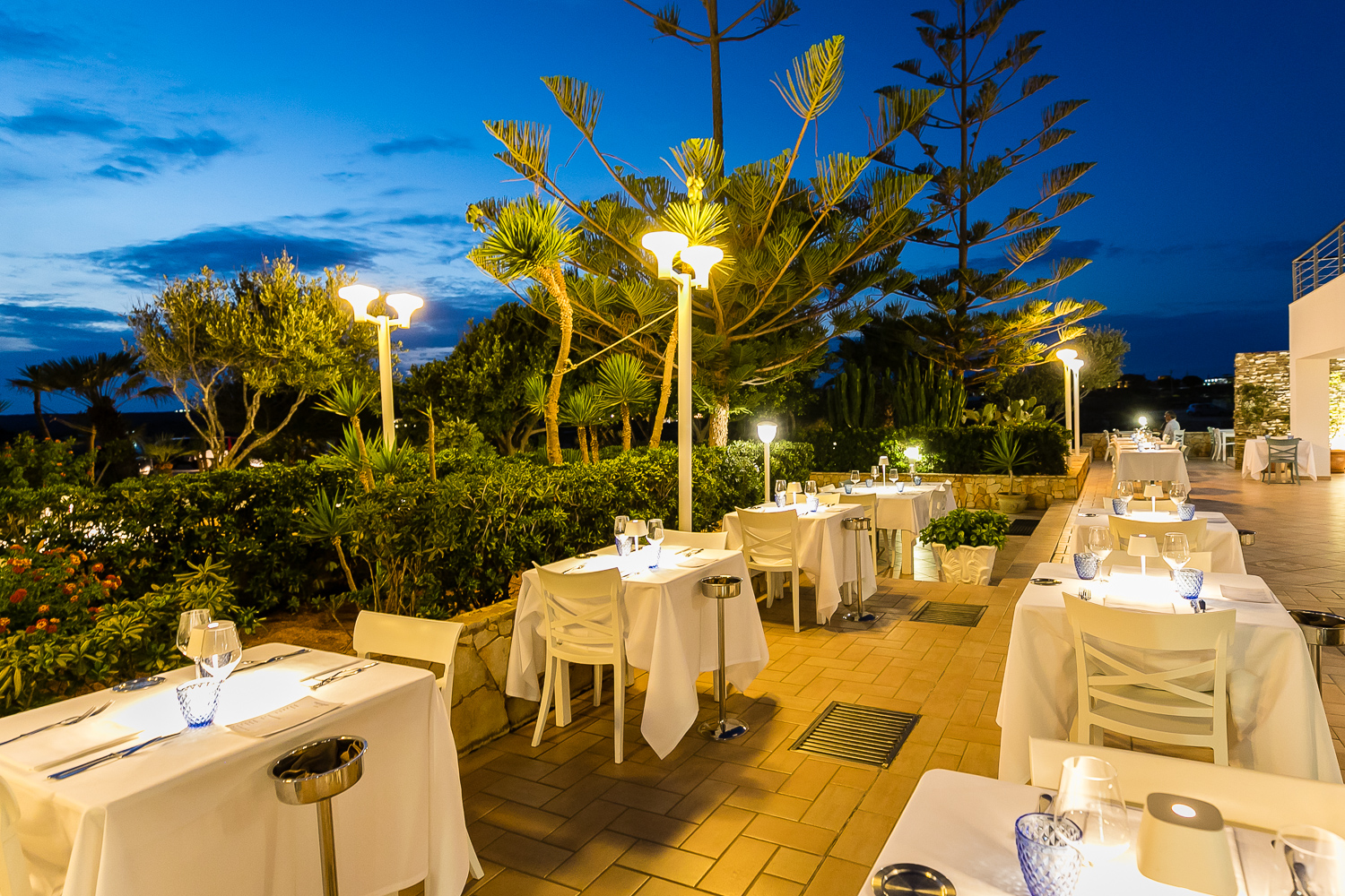 Tra gli spazi esterni del ristorante godiamo di una sensazione di benessere, i tavoli sono ben separati e l’atmosfera rilassante, il servizio è attento e preciso, semplicità ed eleganza vanno a braccetto con quel tocco di calore “femminile” che apprezzo molto in un ristorante. Dopo bellissime giornate tra le incantevoli spiagge qui vicine, è stato bello concludere con le emozioni enogastronomiche della cena, alzare lo sguardo e contare le stelle inebriati dal vento, il mare è poco più in là e si fa sentire.